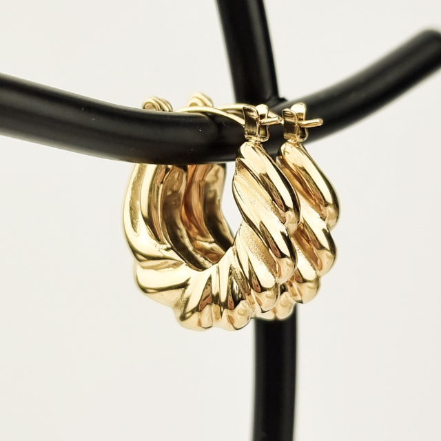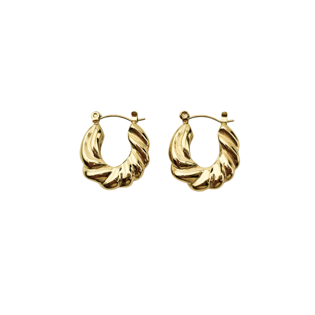 Les boucles d'oreilles sont fabriquées en acier inoxydable et plaquées or 14k.